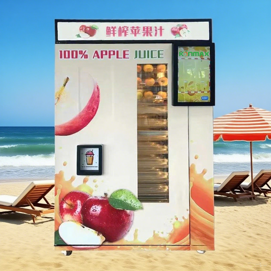 This commercial fresh squeezed apple juice vending machine is a premium healthy drink solution for supermarkets, communities, gas stations and shopping malls, crafted to deliver 100% pure, additive-free, preservative-free fresh apple juice with zero artificial flavors or sweeteners. Every contact part is made of food-grade 304 stainless steel and BPA-free plastic, complying with EU CE, US FDA and global food safety standards, eliminating all hygiene concerns for consumers. The closed automatic peeling and squeezing process avoids manual contact, preventing bacterial contamination and retaining the original vitamins, dietary fiber and natural sweetness of fresh apples. Designed for 24H unattended operation, it fits all high-traffic indoor & outdoor scenes, with a waterproof and dustproof shell for stable running in different climates. The 10-inch multilingual touch screen supports one-click operation, and the smart payment system adapts to multi-currency, mobile and credit card payments, meeting the consumption habits of global customers—ideal for satisfying modern people’s pursuit of healthy, convenient and natural drinks.
