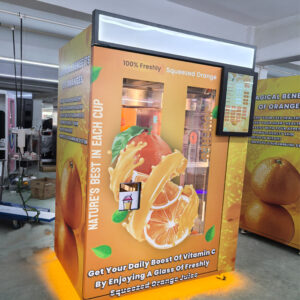 This commercial fresh squeezed orange juice vending machine is the perfect profitable investment for malls, supermarkets, gas stations and other high-traffic places! It supports 24H unmanned self-service operation, which greatly saves labor costs and can create continuous income for you. The machine can squeeze a cup of pure fresh orange juice in only 60 seconds, with a daily output of up to 200 cups, fully meeting the consumption demand of peak flow. It is equipped with an intelligent pricing system and real-time sales data statistics, allowing you to master the operation status and adjust the strategy at any time. The large-capacity orange storage hopper can hold 50-80 oranges at a time, reducing the frequency of replenishment. The one-click cleaning function is convenient and fast, and the food-grade 304 stainless steel squeezing part ensures hygiene and complies with international food safety standards. The machine has a low failure rate and long service life, with a one-year free warranty and professional after-sales team support. It is the most cost-effective unmanned vending project for small and medium investors, with quick return on investment and stable long-term profits.